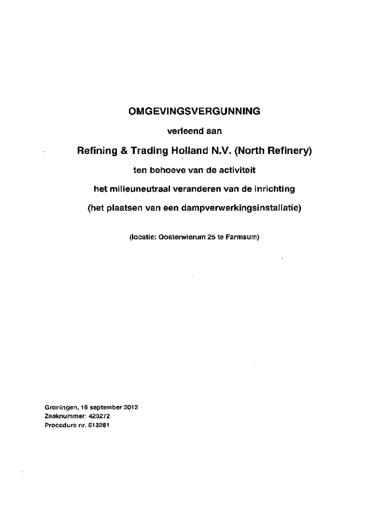 Bedrijven in de olie-industrie die zich bezighouden met het verfijnen en verhandelen van ruwe olie moeten refining amp trading holland indienen.