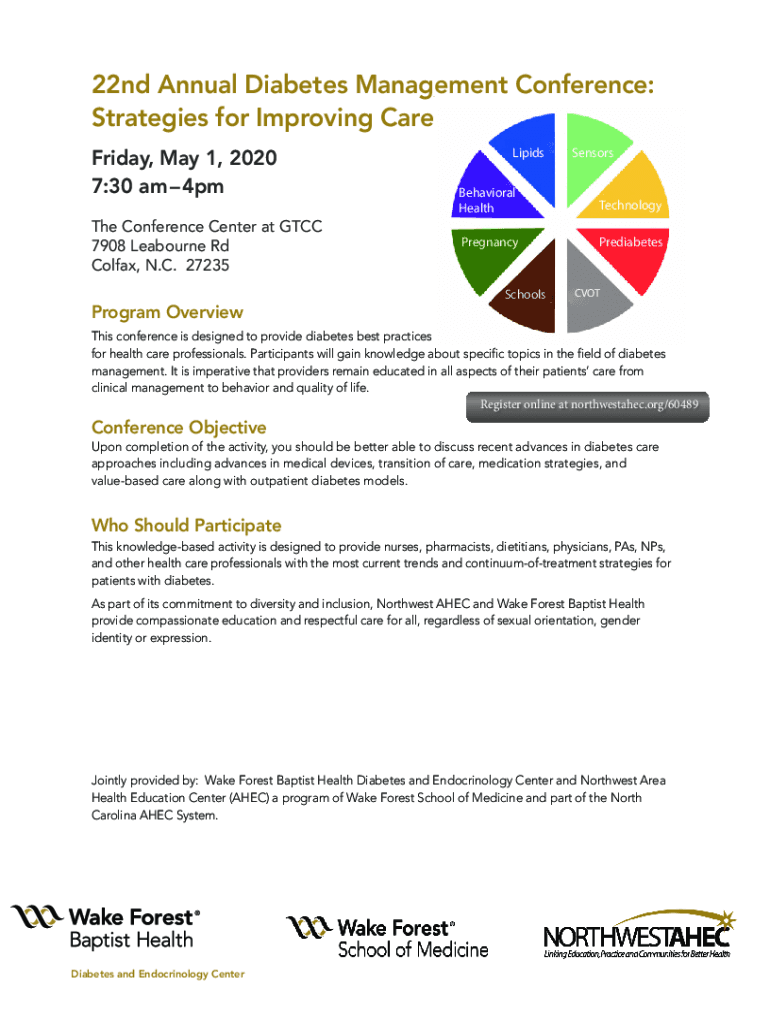22nd Annual Diabetes Management Conference: Strategies for Improving Care Friday, May 1, 2020 7:30 am4pm The Conference Center at GCC 7908 Seabourne Rd Colfax, N.C. 27235Program OverviewLipidsSensorsBehavioral