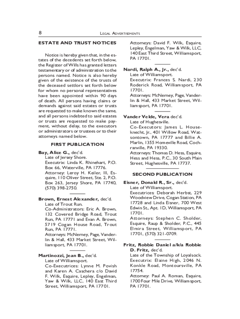 8Legal AdvertisementsESTATE AND TRUST NOTICES