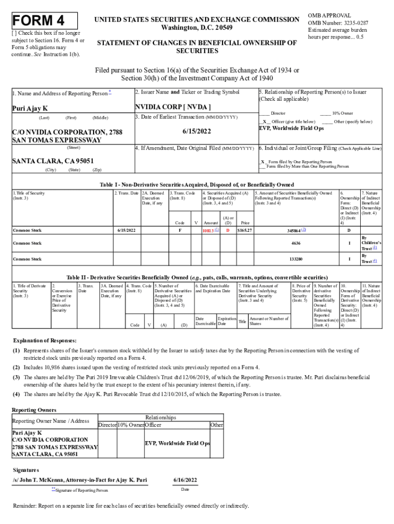 Get the free 0001045810-22-000127. Form 4 filed on 2022-06-17 for the period ending 2022-06-15