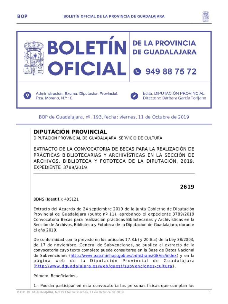 Get the free DIPUTACIN PROVINCIAL 2619 - BOP Guadalajara