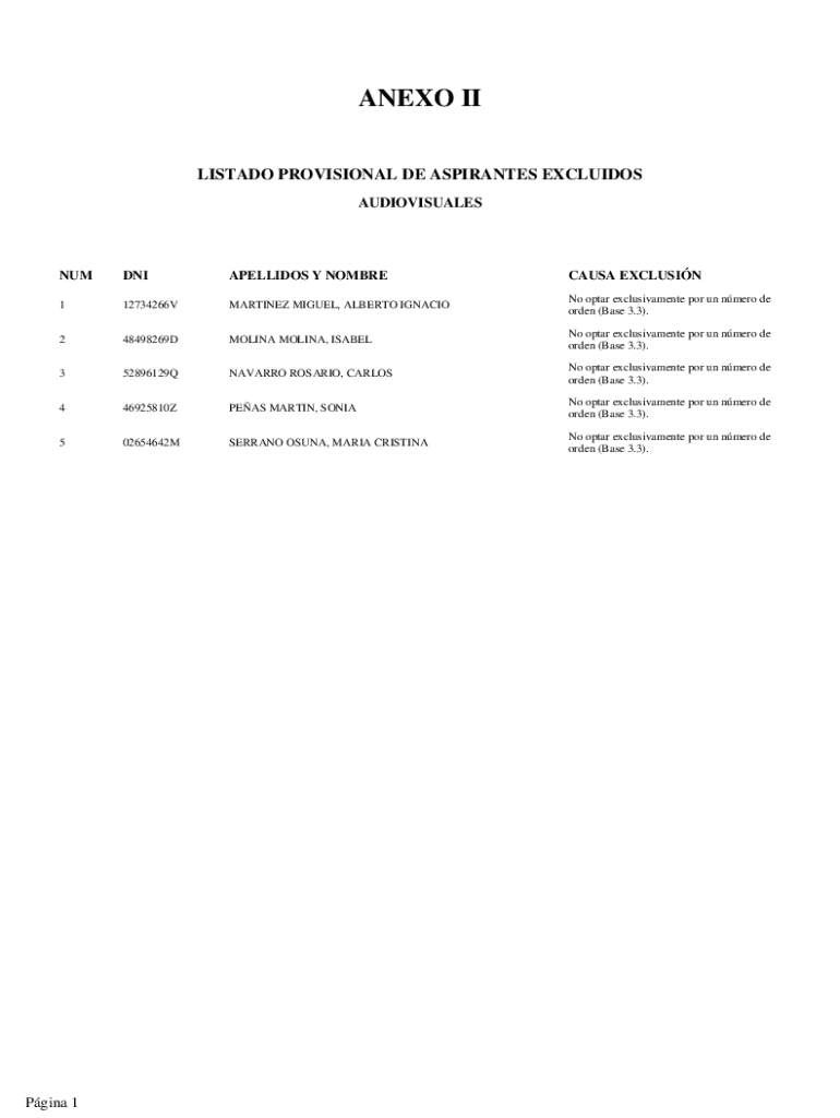 AUDIOVISUALESNUMDNIAPELLIDOS Y NOMBRECAUSA EXCLUSIN112734266VMARTINEZ MIGUEL, ALBERTO Ignacio op tar exclusivamente POR un Nero de