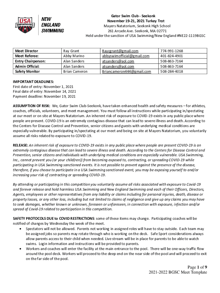 Get the free Page 1 of 9 2021-2022 BGSC Meet Template - TeamUnify