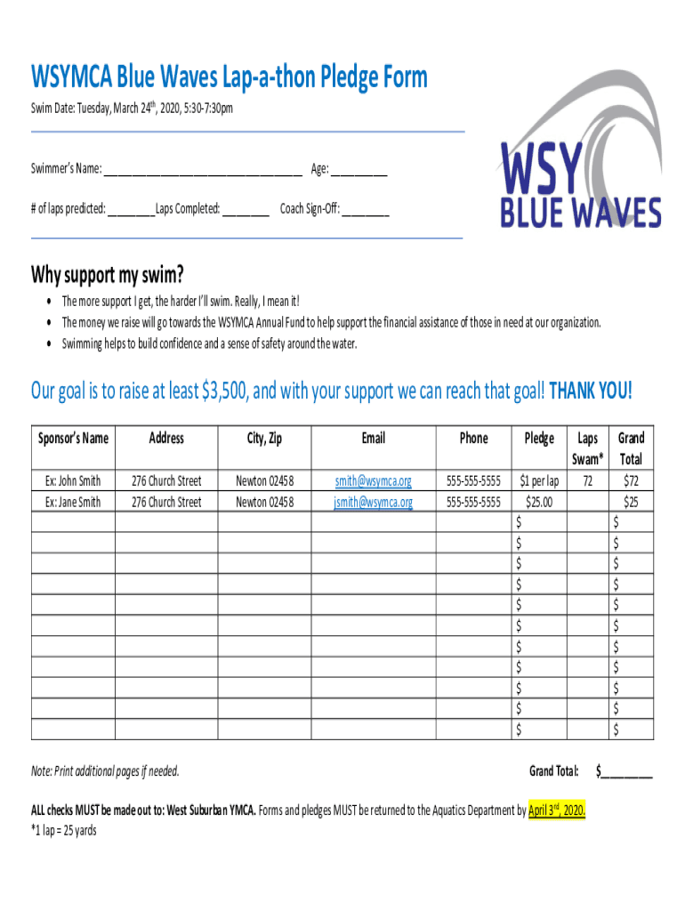 Get the free WSYMCA Blue Waves Lap-a-thon Pledge Form - TeamUnify