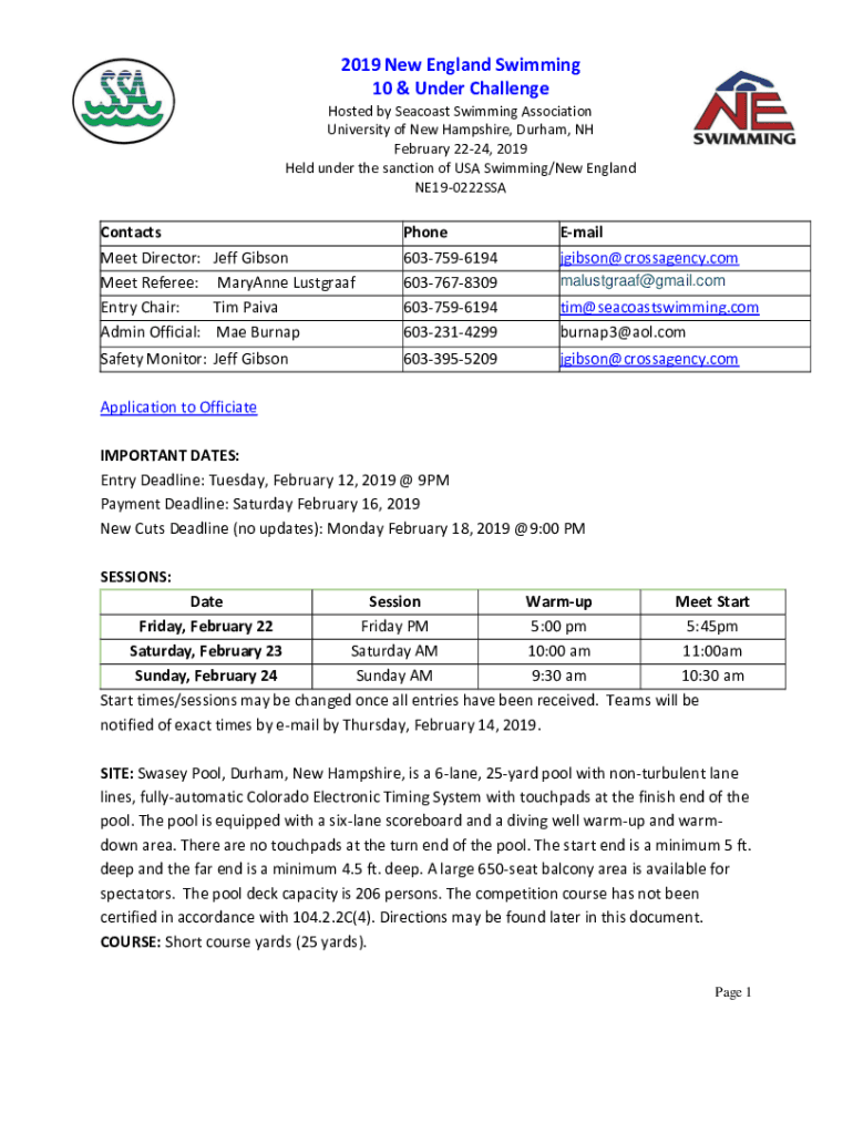 Young swimmers who are 10 years old and under and wish to participate in competitive swimming events organized by new england swimming.