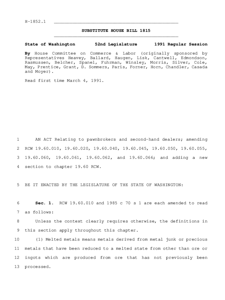 H1852.1___ SUBSTITUTE HOUSE BILL 1815 ___State of Washington52nd Legislature1991 Regular Session House Committee on Commerce & Labor (originally sponsored by Representatives Heavy, Ballard, Hagen,