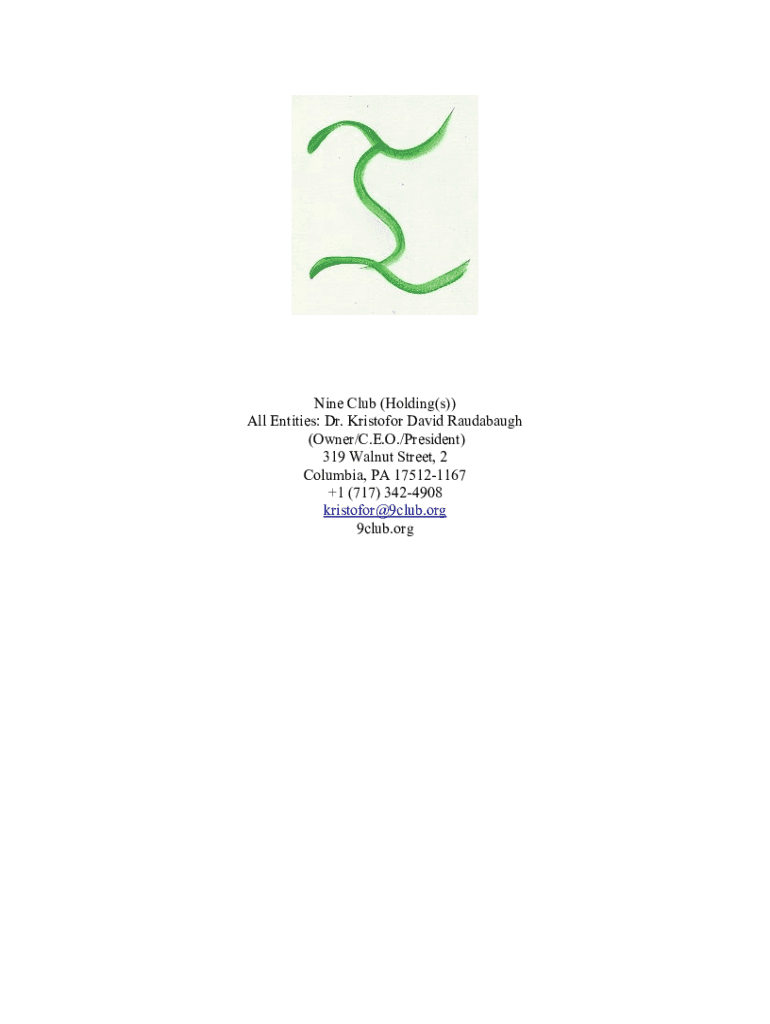 Get the free Nine Club (Holding(s)) All Entities: Dr. Kristofor David ...