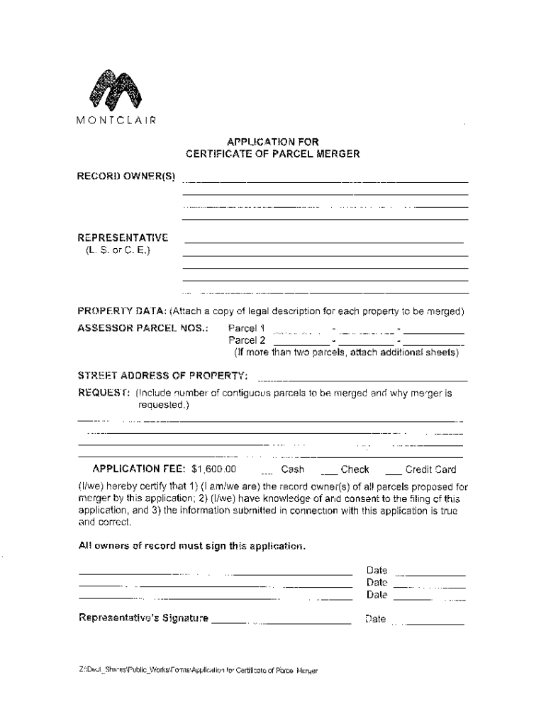 Get the free certificate of parcel merger no. - - record ...