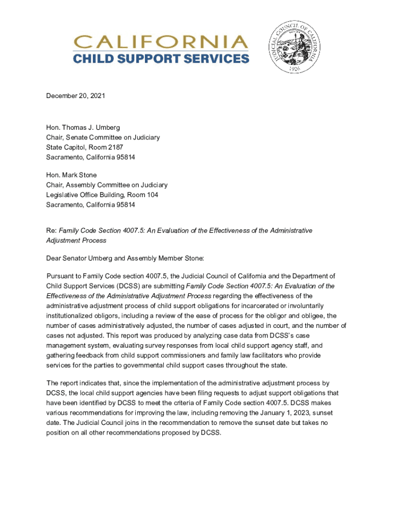 December 20, 2021Hon. Thomas J. Umber Chair, Senate Committee on Judiciary State Capitol, Room 2187 Sacramento, California 95814 Hon. Mark Stone Chair, Assembly Committee on Judiciary Legislative