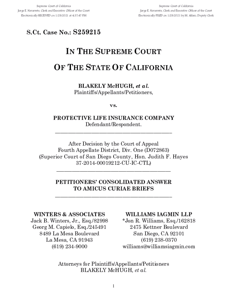 Get the free S259215: Consolidated Answer to Amici Briefs
