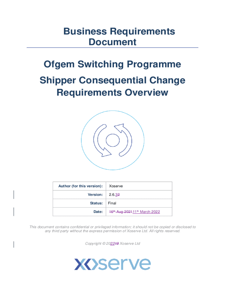 Business Requirements Document Ofgem Switching Program Shipper Consequential Change Requirements OverviewAuthor (for this version): Version: Status: Date:Serve 2.6.32 Final 16th Aug 202111th March