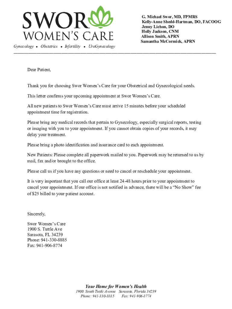 Get the free Your Home for Women's Health Dear Patient, Thank you for ...