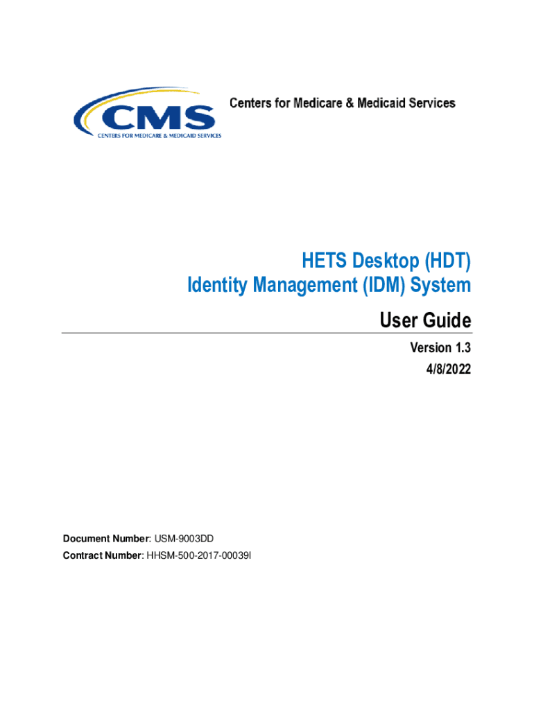 GETS Desktop (HIT) Identity Management (IDM) System User Guide Version 1.3 4/8/2022Document Number: USM9003DD Contract Number: HHSM500201700039ICMSTable of Contestable of Contents 1. Introduction