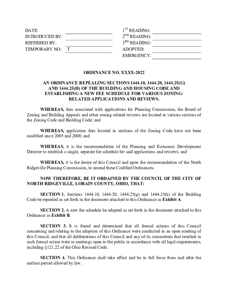 DATE: INTRODUCED BY: REFERRED BY: TEMPORARY NO: T1ST READING: 2ND READING: 3RD READING: ADOPTED: EMERGENCY: ORDINANCE NO. XXXX2022AN ORDINANCE REPEALING SECTIONS 1444.10, 1444.20, 1444.25(G) AND 1444.25(H)