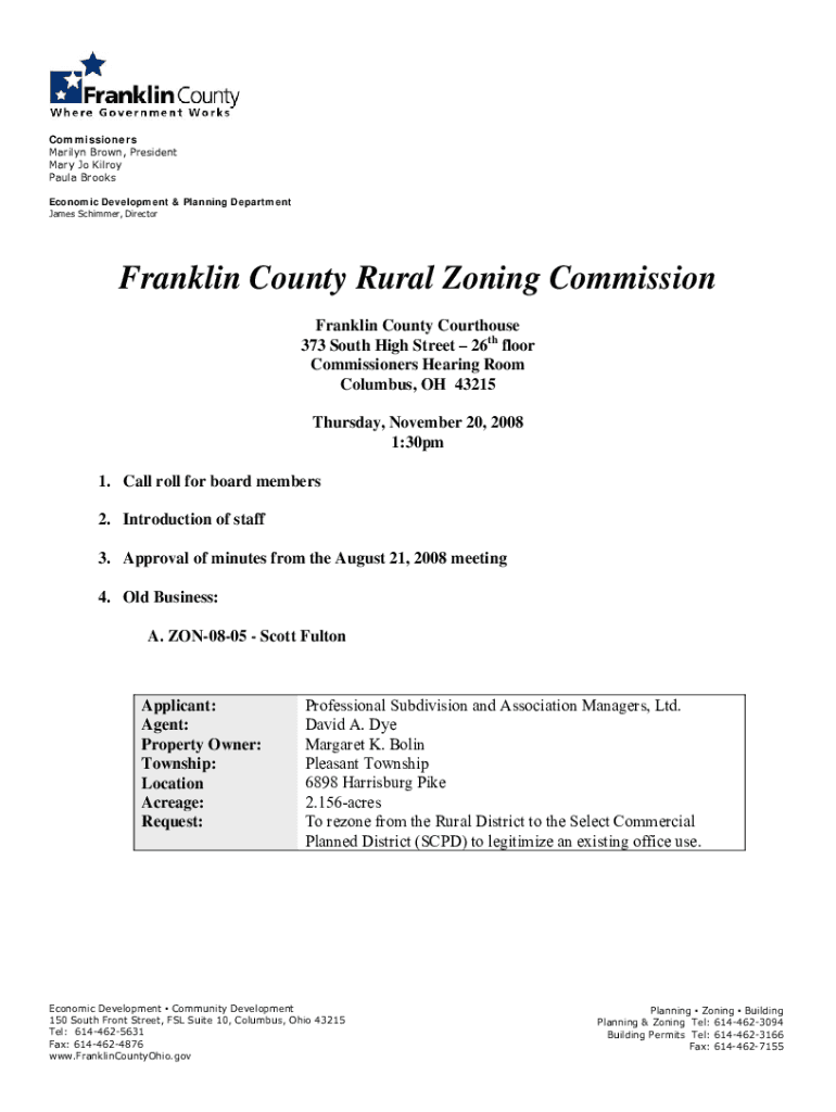 Commissioners Marilyn Brown, President Mary Jo Kilroy Paula Brooks Economic Development & Planning Department James Shimmer, Director Franklin County Rural Zoning Commission Franklin County Courthouse