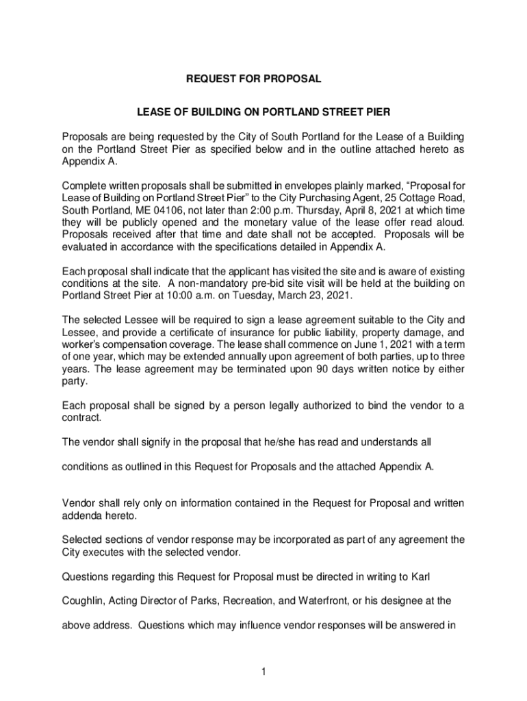 Get the free Request for Proposal Lease of Building on Portland Street Pier