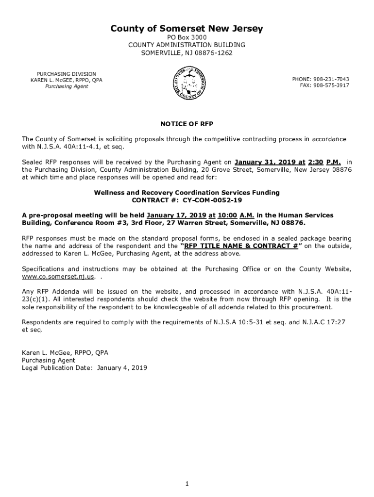Get the free NOTICE OF RFP - Somerset County