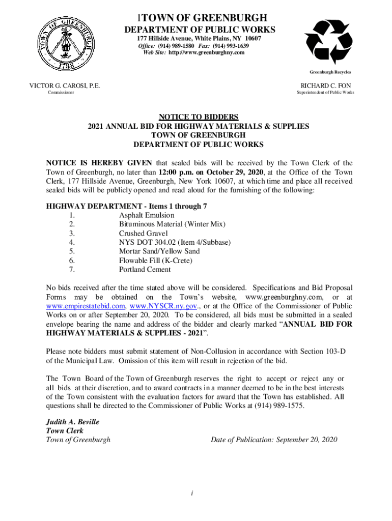 1TOWN OF GREENBERG DEPARTMENT OF PUBLIC WORKS 177 Hillside Avenue, White Plains, NY 10607 Office: (914) 9891580 Fax: (914) 9931639 Website: http://www.greenburghny.com Green burgh RecyclesVICTOR G.