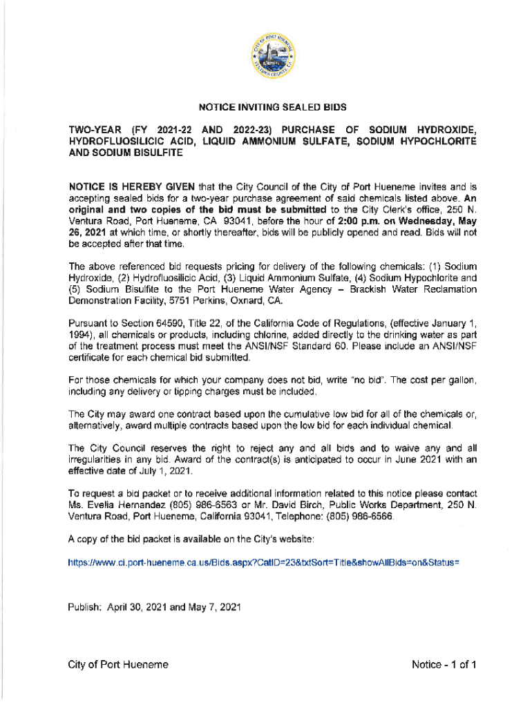 NOTICE INVITING SEALED BIDS(FY 202122 AND 2022231 PURCHASE OF SODIUM HYDROXIDE,