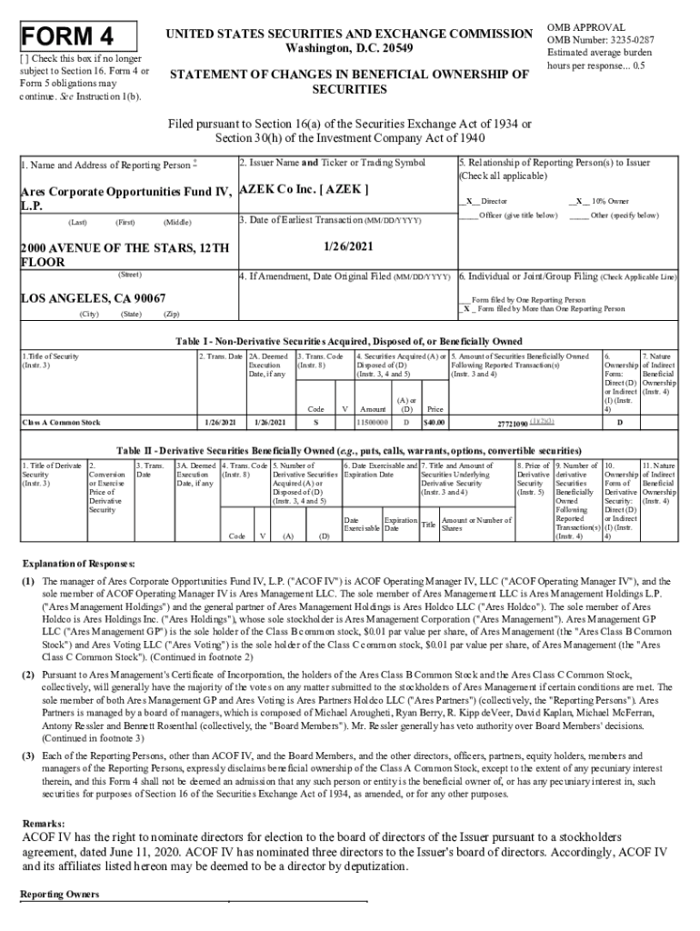 Get the free Ares Corporate Opportunities Fund IV, AZEK Co Inc