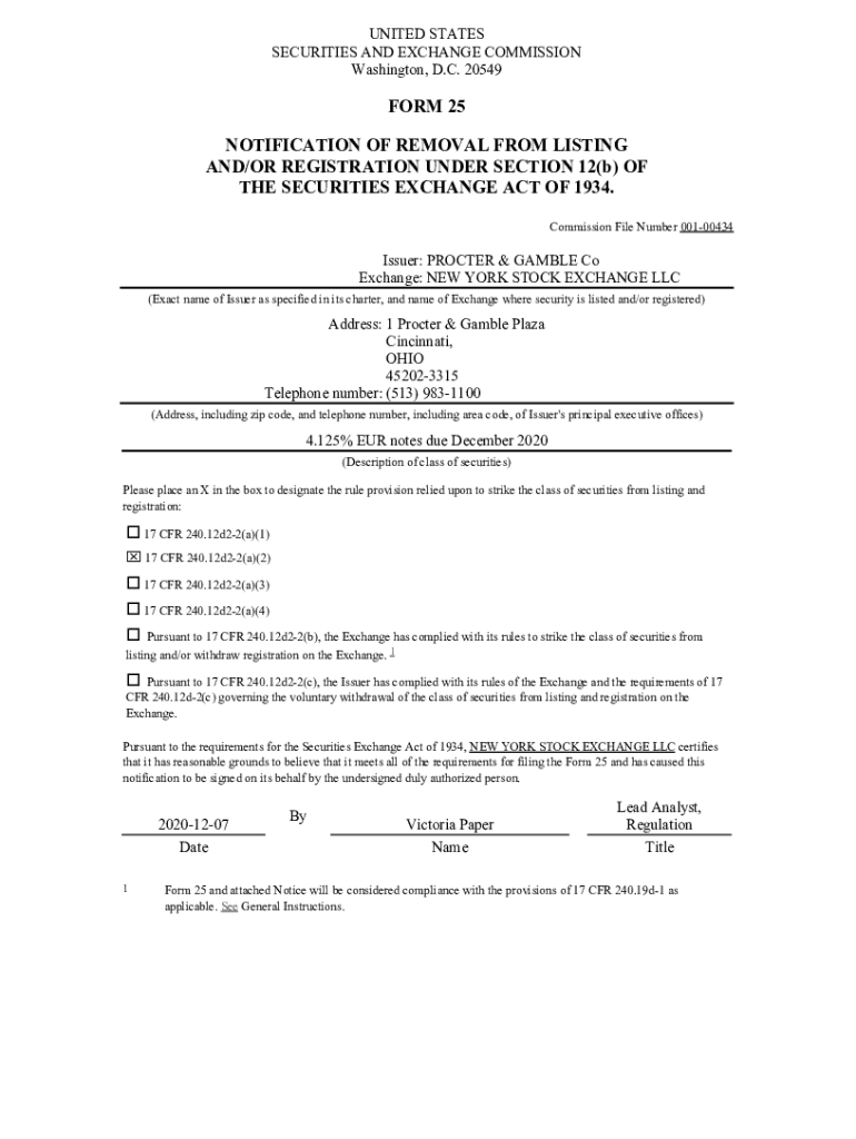 Get the free NOTIFICATION OF REMOVAL FROM LISTING AND/OR REGISTRATION UNDER SECTION ...