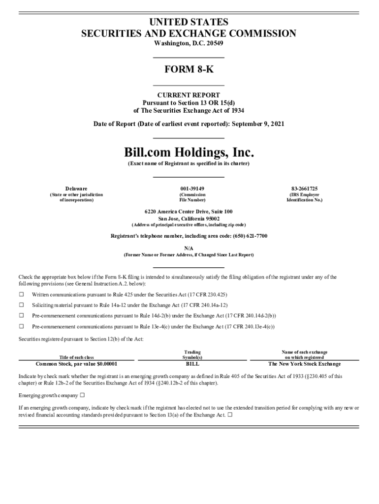 Email, fax, or share your billcom holdings inc form via URL. You can also download, print, or export forms to your preferred cloud storage service.