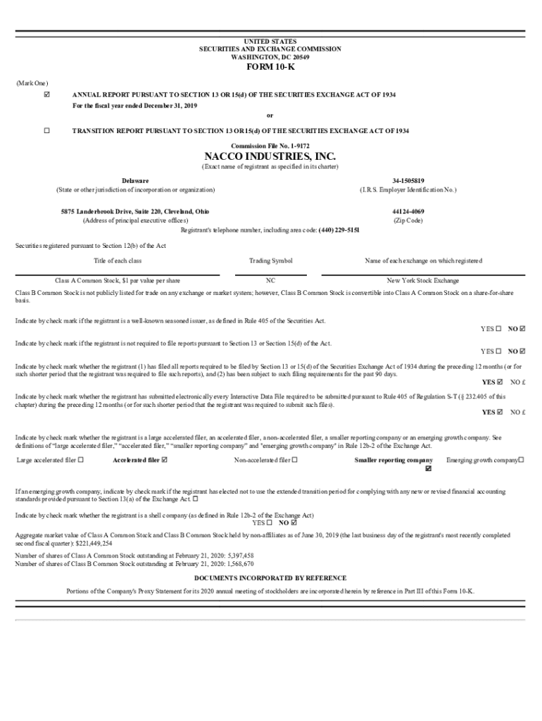 Nacco Industries Inc is required to file financial reports and other relevant documents with the Securities and Exchange Commission.