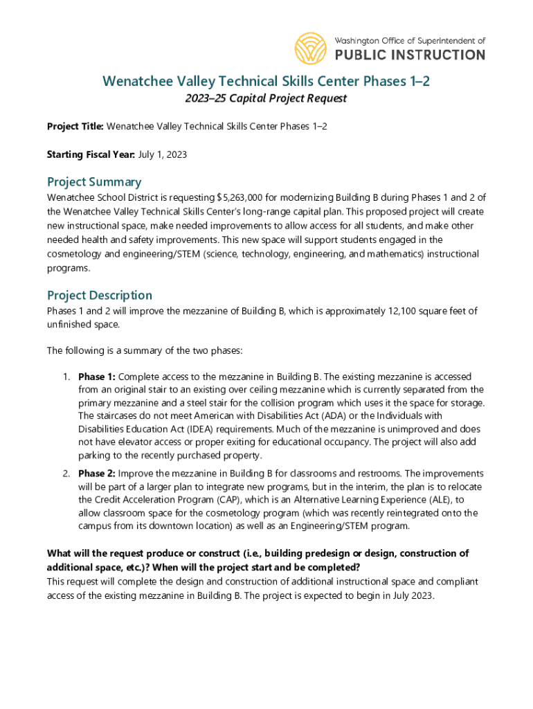 Get the free Wenatchee Valley Technical Skills Center Phases 1-2 - OSPI