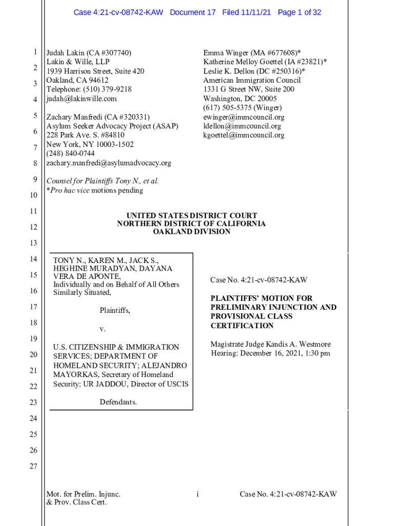 Case 4:21cv08742KAW Document 17 Filed 11/11/21-Page 1 of 321 2 3 4 5 6 7 8 9 10Judah Latin (CA #307740) Latin & Will, LLP 1939 Harrison Street, Suite 420 Oakland, CA 94612 Telephone: (510) 3799218