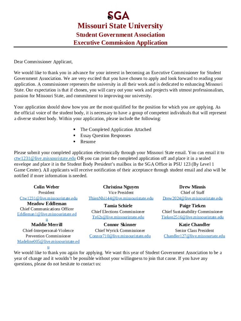 The New Applicants - Missouri Office of Equal Opportunity - sga missouristate is a Word document that has to be filled-out and signed for specified purposes. Then, it is furnished to the actual addressee in order to provide certain info of certain kinds. The completion and signing may be done in hard copy or via an appropriate solution e. g. PDFfiller. Such applications help to submit any PDF or Word file online. While doing that, you can customize its appearance for your requirements and put a legal electronic signature. Once finished, the user sends the New Applicants - Missouri Office of Equal Opportunity - sga missouristate to the recipient or several recipients by email or fax. PDFfiller offers a feature and options that make your template printable. It provides a variety of settings for printing out. No matter, how you will send a form after filling it out - physically or electronically - it will always look neat and clear. To not to create a new writable document from the beginning again and again, make the original document as a template. Later, you will have an editable sample.