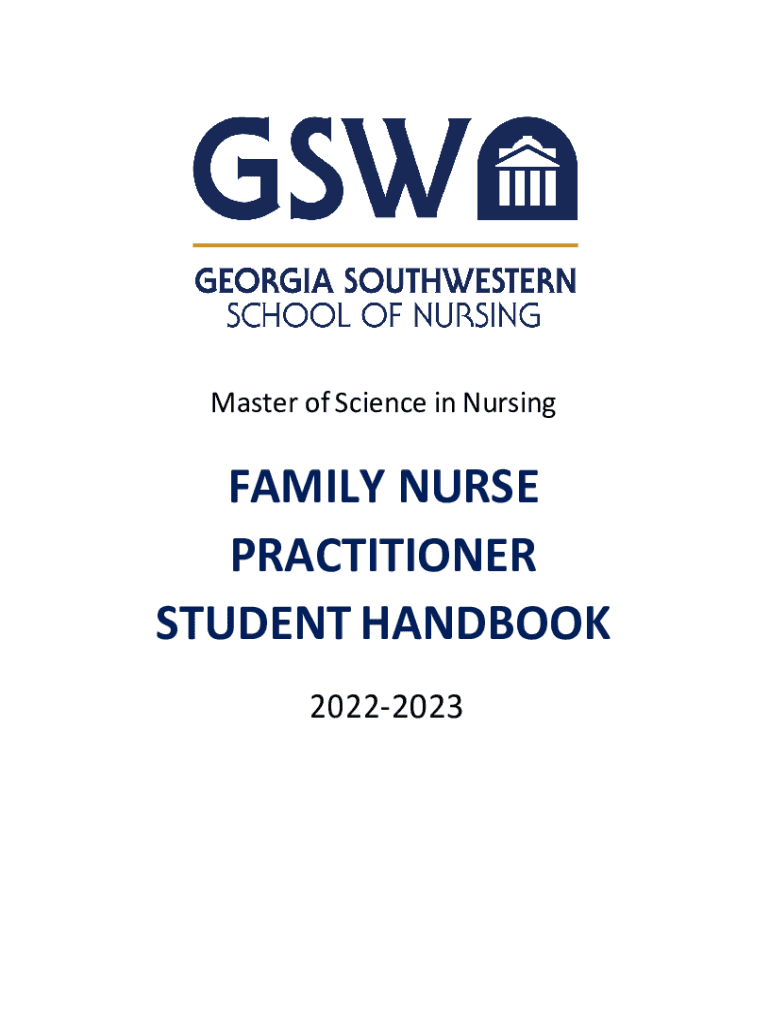 Master of Science in NursingFAMILY NURSE PRACTITIONER STUDENT HANDBOOK 20222023TABLE OF CONTENTS Welcome FDP Student Handbook Purpose... Americans with Disabilities (ADA) Statement... Disclaimer Mission.