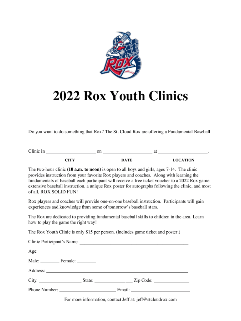 Get the free northwoodsleague.comst-cloud-roxwp-content2022 Rox Youth Clinics - northwoodsleague.com