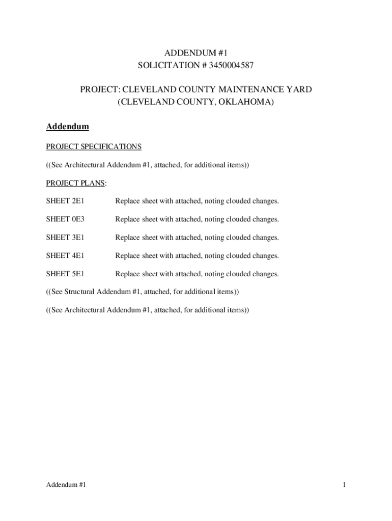 Get the free ADDENDUM #1 SOLICITATION # 3450004587 PROJECT: CLEVELAND COUNTY ...