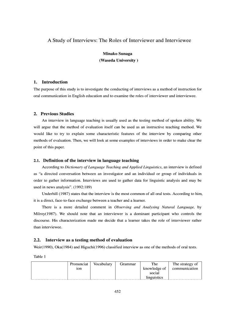 (Based University)1. Introduction purpose of this study is to investigate the conducting of interviews as a method of instruction