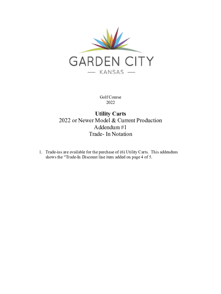 Golf Course 2022Utility Carts 2022 or Newer Model & Current Production Addendum #1 Trade In Notation 1. Trade-ins are available for the purchase of (6) Utility Carts. This addendum shows the Trade