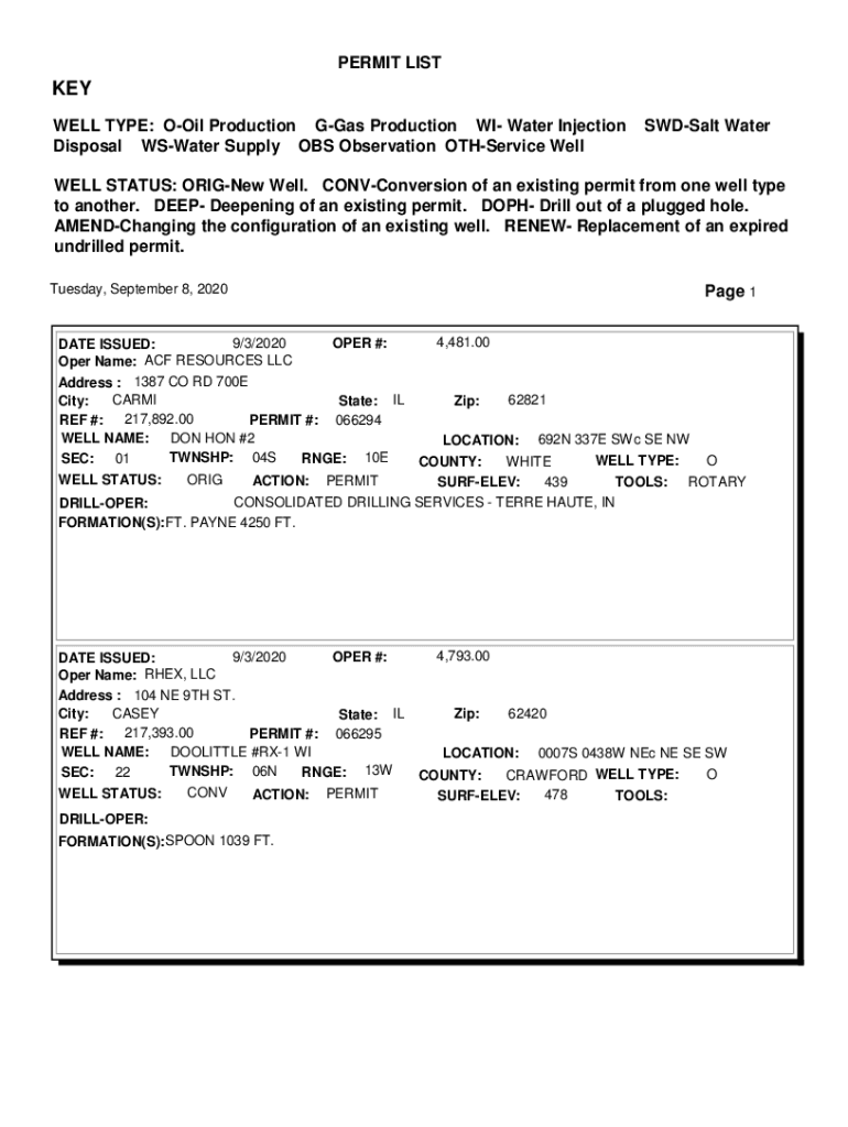 Disposal Water Supply OBS Observation Service WellSWDSalt Waterfall STATUS: Original Well. CONVConversion of an existing permit