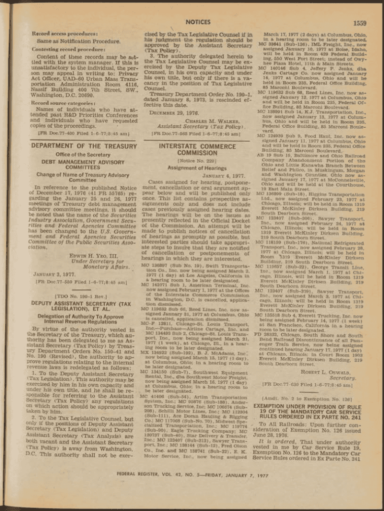 NOTICES1559VRecord access procedures :March 17, 1977 (2 days) at Columbus, Ohio, cited by the Tax Legislative Counsel if in a hearing room to be later designated. His judgment the regulation should