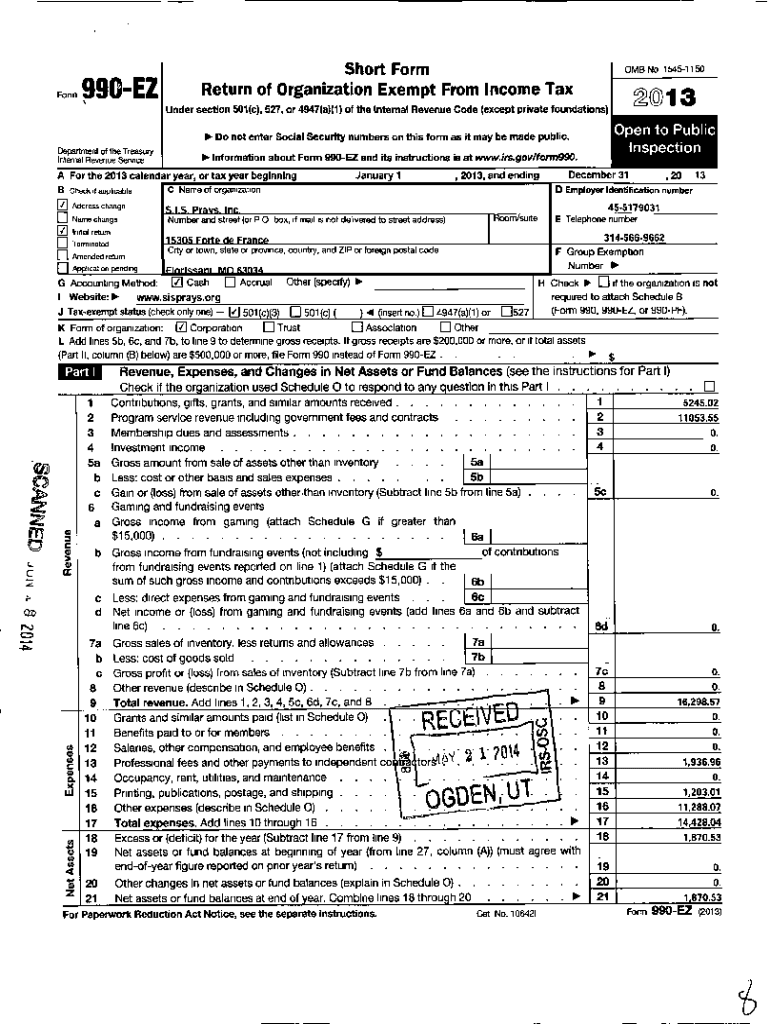 Form 99EZShort Form Return of Organization Exempt From Income Tax OMB No 1545115020013Under section 501(c), 527, or 4947(a)(1) of the Internal Revenue Code (except private foundations) ^ Do not enter