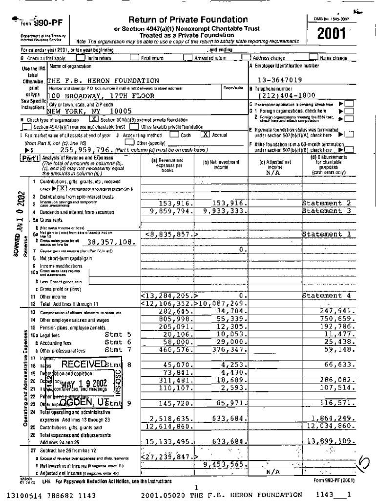 Download the IRS Form 990-2001 PDF from the Heron Foundation website.