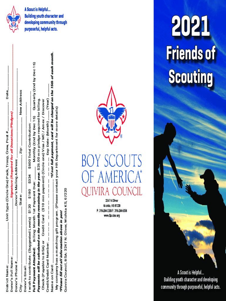 Quiver Council, BSA: 3247 N. Oliver, Wichita KS, 67220×Please fill out all information above in pen! My company has a matching gift program. (Please contact your HR Department for more details)Name