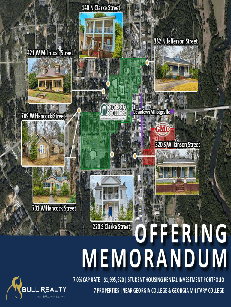 OFFERING MEMORANDUM7.0% CAP RATE | $1,995,920 | STUDENT HOUSING RENTAL INVESTMENT PORTFOLIO 7 PROPERTIES |NEAR GEORGIA COLLEGE & GEORGIA MILITARY COLLEGEDISCLAIMER & LIMITING CONDITIONS Bull Realty