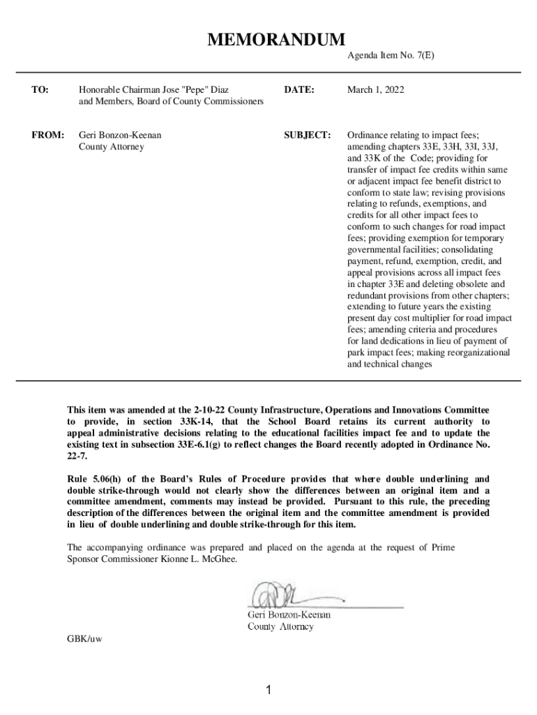 Get the free Ordinance relating to impact fees;