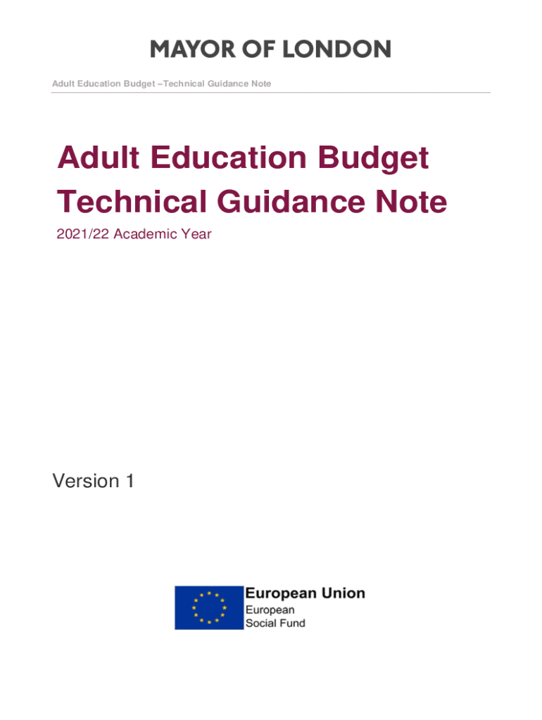 Adult Education Budget Technical Guidance NoteAdult Education Budget Technical Guidance Note 2021/22 Academic Reversion 1COPYRIGHT Greater London Authority November 2021 Published by Greater London