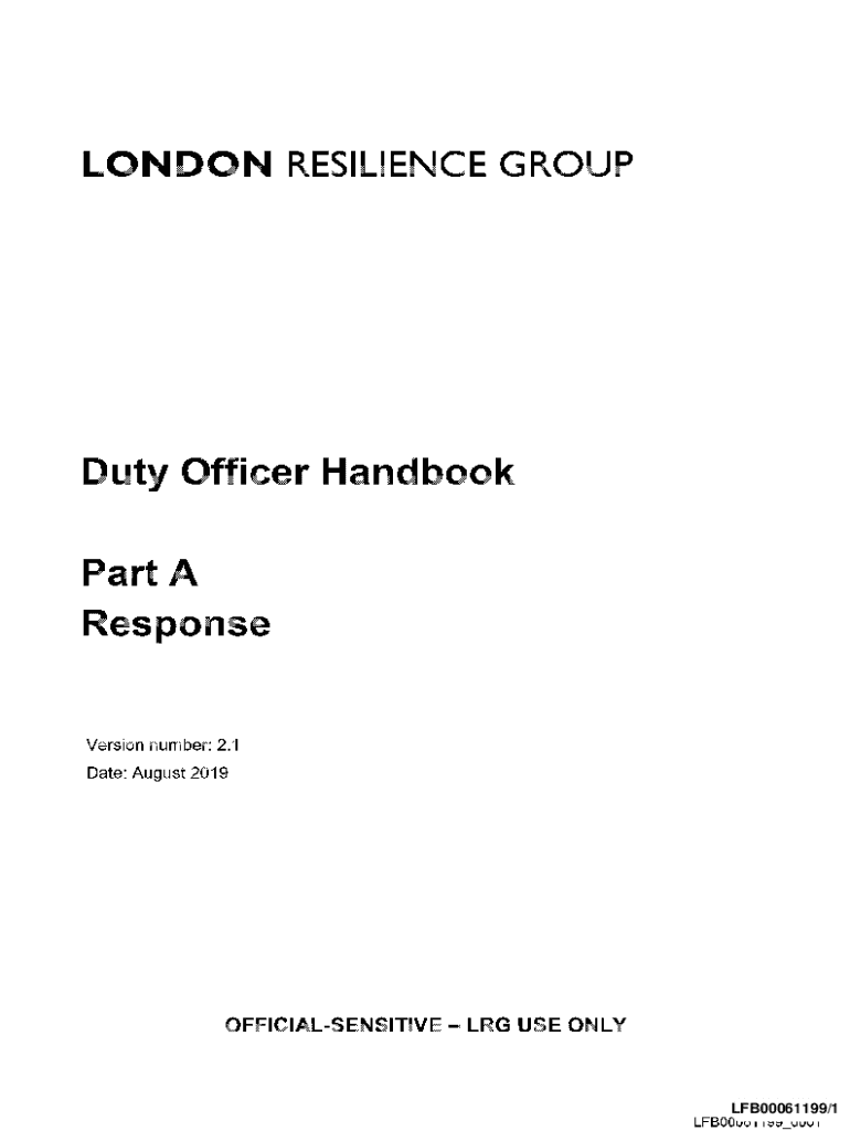 LONDON RESILIENCE Groundnut Officer Handbook Part A ResponseVersion number: 2.1 Date: August 2019OFFICIALSENSITIVE LEG USE ONLYLFB00061199/1 LFB00061199_0001Document Security This document is protectively