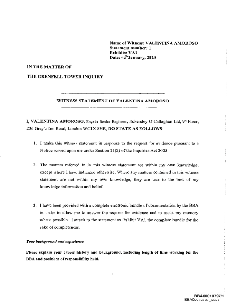 Name of Witness: VALENTINA AMOROUS Statement number: 1 Exhibits: Val Date:1January,2020IN THE MATTER OF THE GRENFELL TOWER INQUIRYWITNESS STATEMENT OF VALENTINA AEROSOL, VALENTINA AMOROUS, Facade