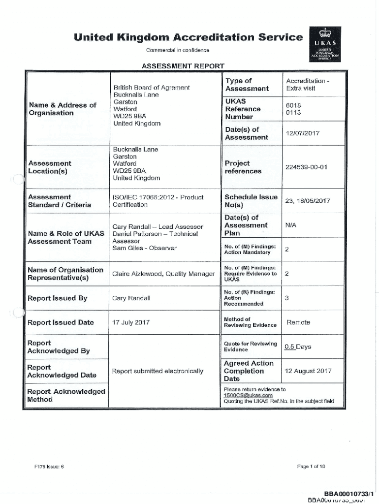 United Kingdom Accreditation Service Commercial in confidenceASSESSMENT Reportage & Address of Organization\” Assessment Location(s)Assessment Standard I CriteriaName & Role of UKASE Assessment