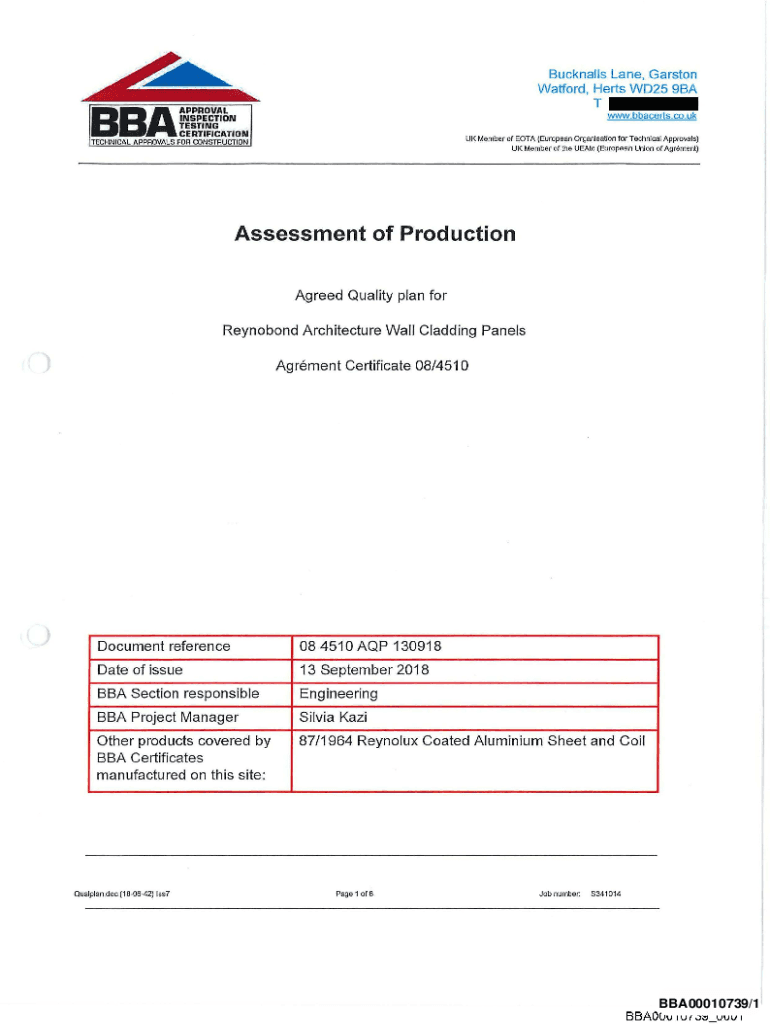 Trackballs Lane, Gars ton Watford, Hearts WD25 9BA www.bbacerts.co.ukUK Member of ETA (European Organization for Technical Approvals) UK Member of the Eric (European Union of Agreement)Assessment