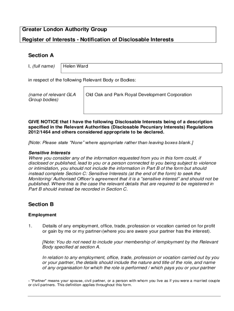 Get the free Notification of Disclosable Interests Section A - London Gov