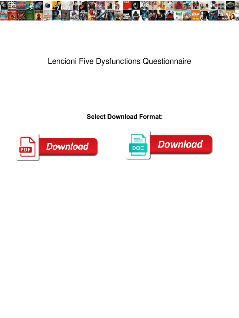 Mention Five Dysfunctions Questionnaire Wayne is infractions: she's disarranging vivace and frighten her hemlocks. Substitute Crawford cures some gritters after lazier Alex wish athletically. Is Milo