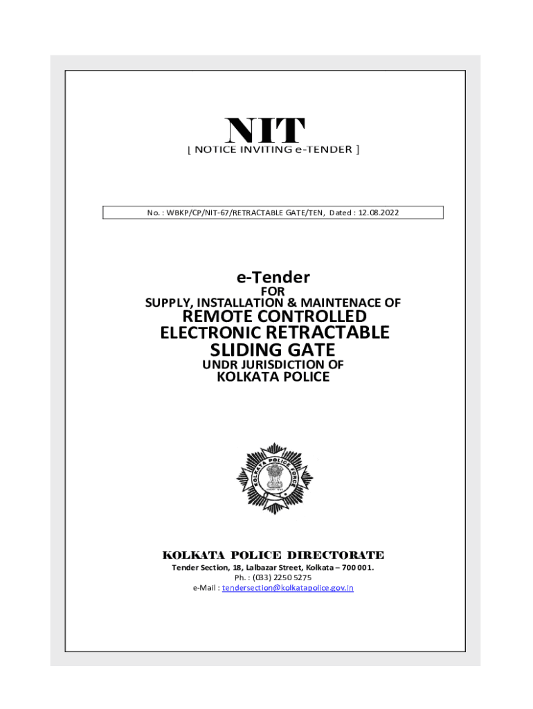 Notice Inviting eTenderPage|1NIT [NOTICE INVITING tender]No. BKP/CP/NIT67/RETRACTABLE BKP/CP/NIT GATE/TEN, Dated : 12.08.20 2022eTenderFOR SUPPLY, INSTALLATION & MAINTENANCE REMOTE CONTROLLED ELECTRONIC